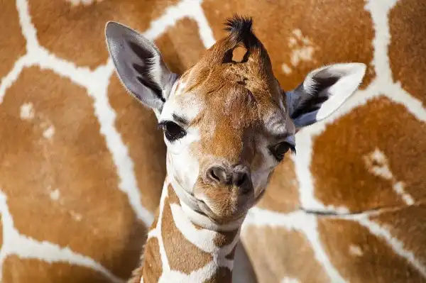 Этот детеныш - часть успешной программы разведения жирафов в зоопарке.