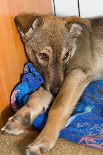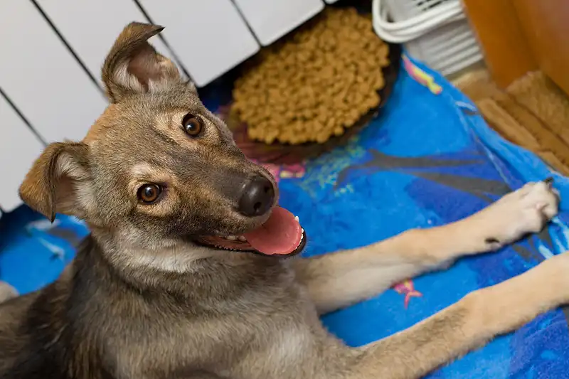 Ищем заботливых хозяев для Евы, щенка-подростка. Она сейчас живёт у нас на передержке; озорная, но воспитанная девочка! Дома не пакостит, по туалетным делам - терпит до улицы. Понимает самые базовые команды ("Сидеть!", "Фу!",..).