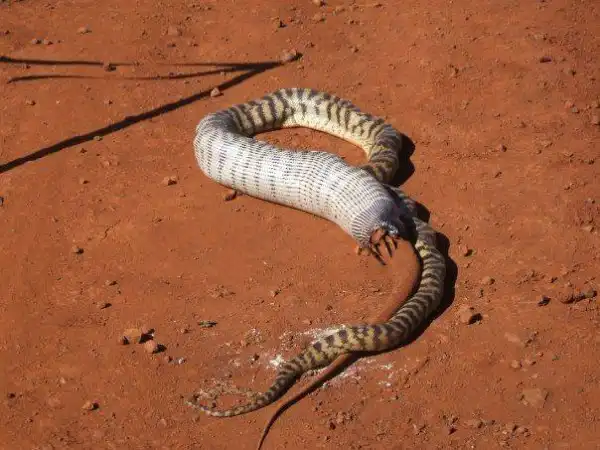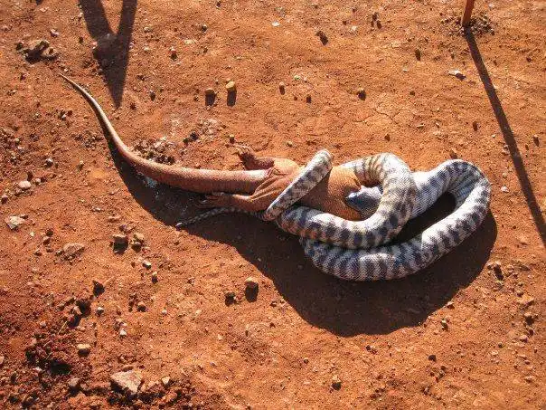 Я тоже тут схватки не увидела, " змея ест игуану " было бы более точно