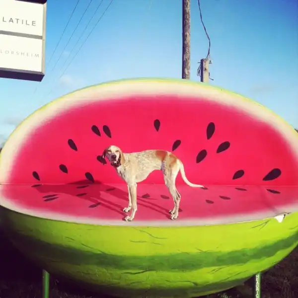 Американка Терон Хамфри очень любит путешествовать. А еще она очень любит свою собаку. Однажды она решила соединить это воедино. В итоге получились вот такие фотографии любимого питомца на фоне самых разных "декораций". Главная особенность всех фото - собака послушно стоит по стойке смирно, практически не меняя своей позы из кадра в кадр.