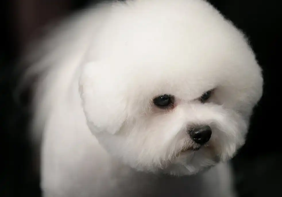 Бишон фризе по кличке Фил ждет своего выхода на конкурсе.