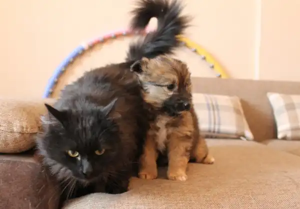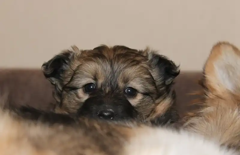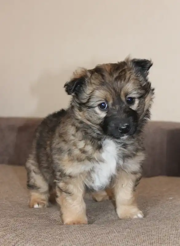 Маленький пушистый щенок девочка Кнопка