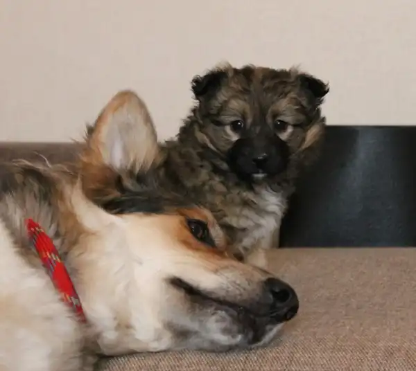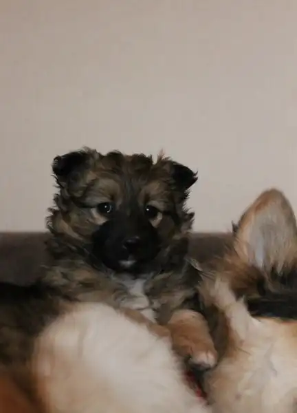 Кнопе сейчас 2 месяца, вырастет маленькой комнатной собачкой, примерно 30 см в холке. Кнопка избавлена от паразитов, в скором времени предстоит вакцинация.