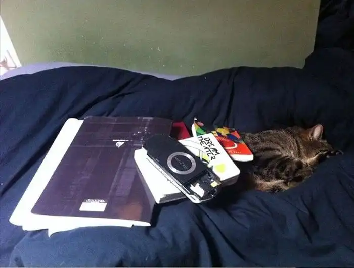 А так, когда кошка спит, с ней можно делать все, что вам угодно.
