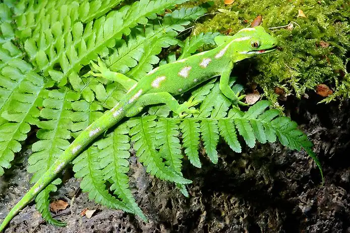 8 место занимает новозеландский Зелёный геккон, также ведущий дневной образ жизни, как и его мадагаскарские "коллеги"