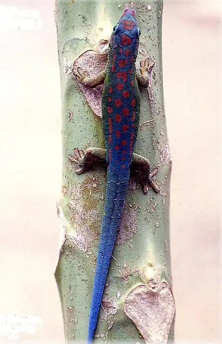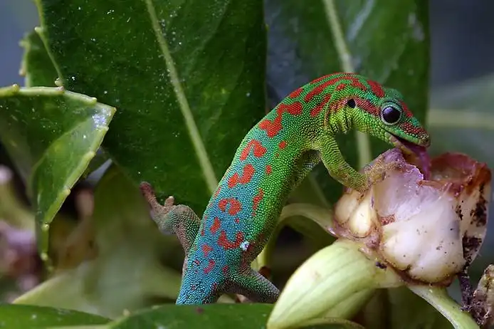 10 место занимает ещё одна дневная ящерица с Мадагаскара, отличающаяся от прошлого вида большим количеством красных точек на спине и размером — это самый крупный геккон, ведущий дневной образ жизни, в длину достигающий 23 сантиметров