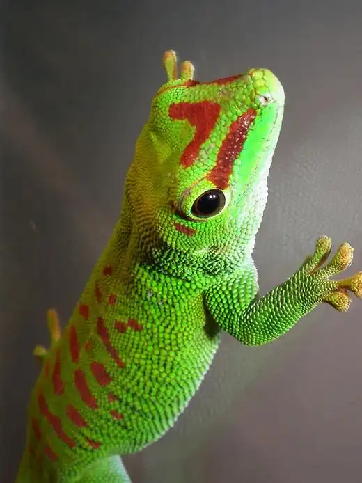 В то время как тело таких гекконов полностью окрашено в зелёный цвет, их рты и языки могут быть оранжевыми, красными, синими, черными, розовыми или желтыми!