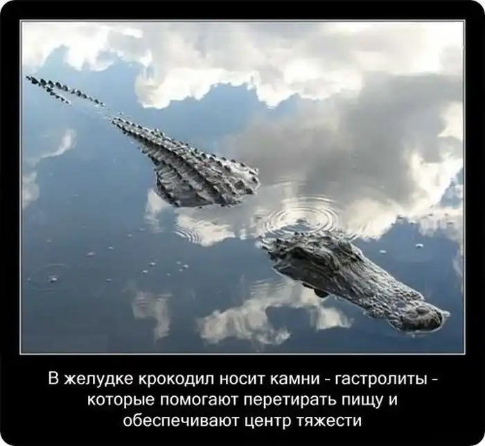 Еще один факт: крокодил, перевернутый на спину на твердой земле, застывает на некоторое время в ступоре. Лапами он перевернуть себя не может (конструкция лап не позволяет до земли дотянуться), но способен резким ударом хвоста подбросить себя и тем самым перевернуться. А вот в воде ему пофиг перевороты.