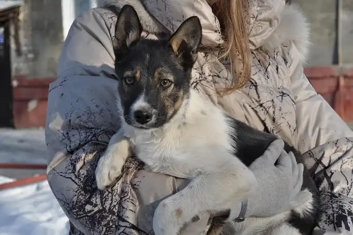К нам он попал с улицы обессиленный в крайней степени истощения, это был скелет, обтянутый кожей. Даже сейчас прибавив в весе и регулярно получая корм, он ест с неистовой жадностью, за секунды проглатывая все без остатка. Сейчас он окреп, начал играть и гулять. На улице показал себя смелым щенком. Вжимаясь в стену дома, он не убежал, щелкал зубами, когда наша крупная собака Дина бесцеремонно кинулась, желая познакомиться. Думаем, что когда щенок вырастет, он станет другом и смелым защитником своих хозяев. Щенок становится забавным, нуждается в постоянном общении и заботе.
