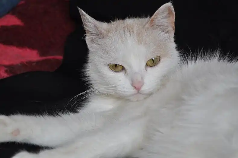 Красавица Нора, белая с персиковыми пятнышками, возраст 2 года.