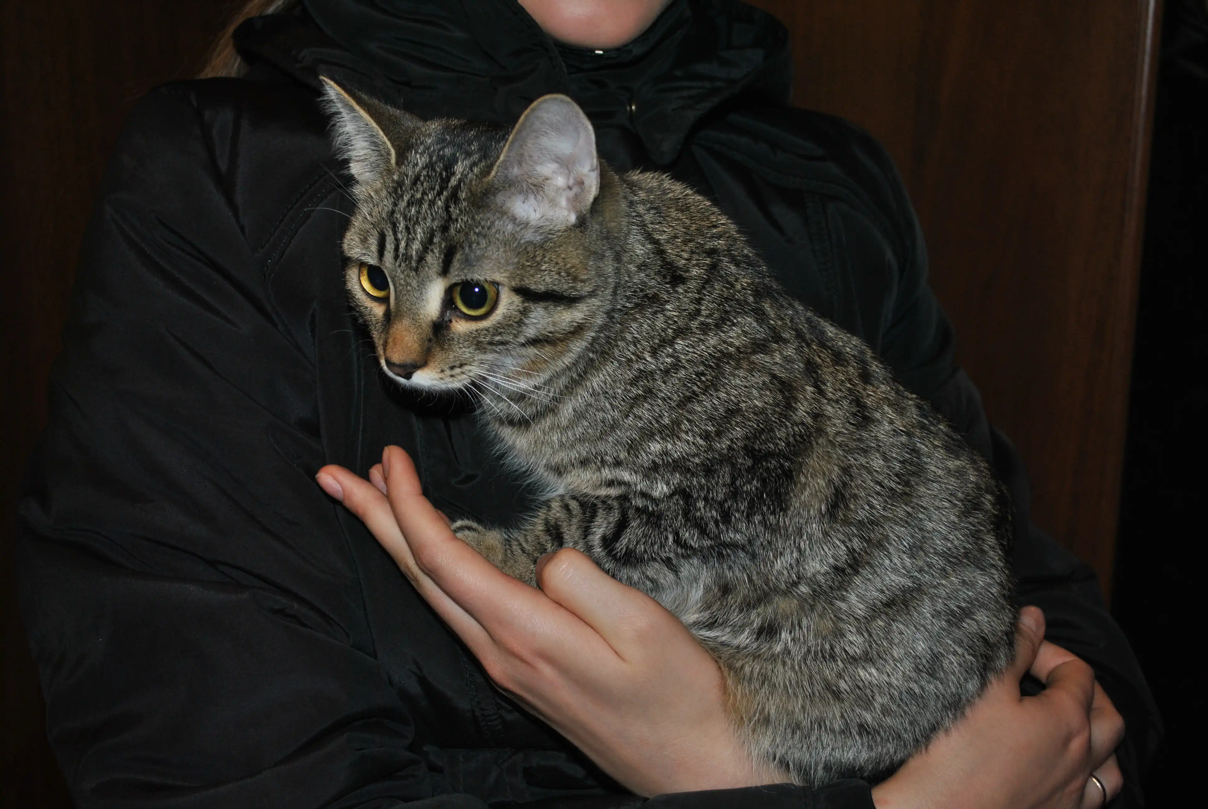 У меня в подъезде появился котенок. На вид 4-5 месяцев. Полосатый. похож на британца. Ухоженный, блох вроде нет. Очень ласковый, тарахтит как трактор, когда его гладишь, но при этом спокойный. Попробовала принести домой, но мой кот на него орет.