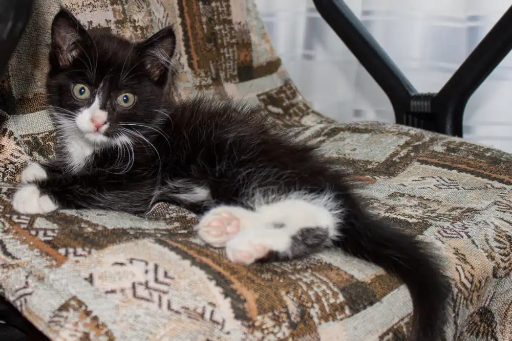 Его нашли замерзшим и голодным на улице. Сейчас это озорной, смышлёный отважный мальчуган; любит вкусно покушать и сладко поспать. Играет со всем, что попадётся на пути.