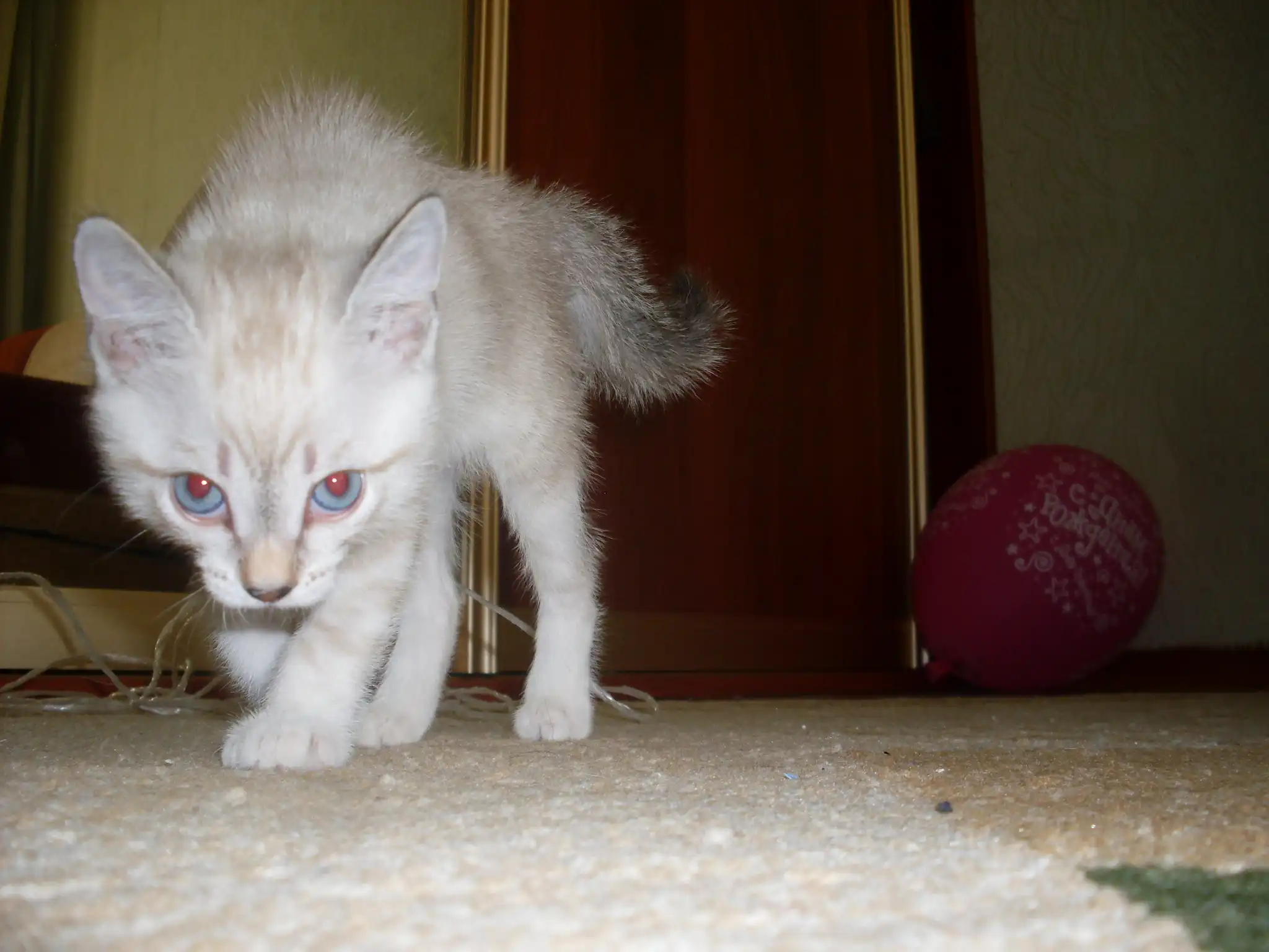 Возраст: 1,5 мес (24,02,12), родился от домашней, ухоженной кошки. Окрас: белый, ушки и хвостик серенькие.