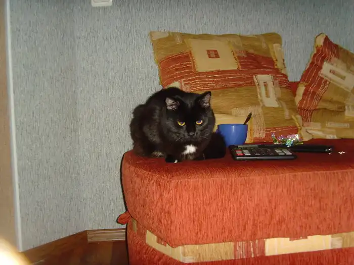 Черный пушистый кот Том