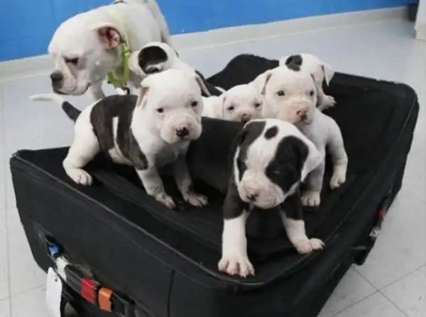Владелец этих щенков запихнул их в чемодан и выкинул на ближайшую помойку.