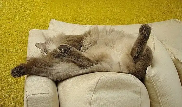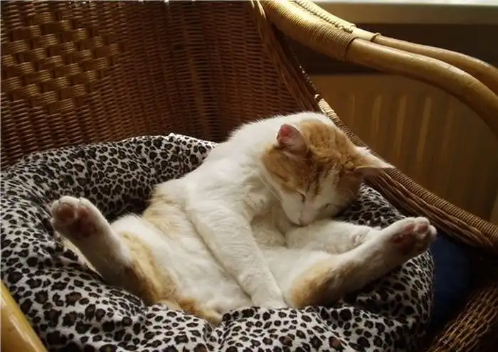 кот однажды уснул на подголовнике большого кресла и потом упал оттуда во сне..с грохотом..