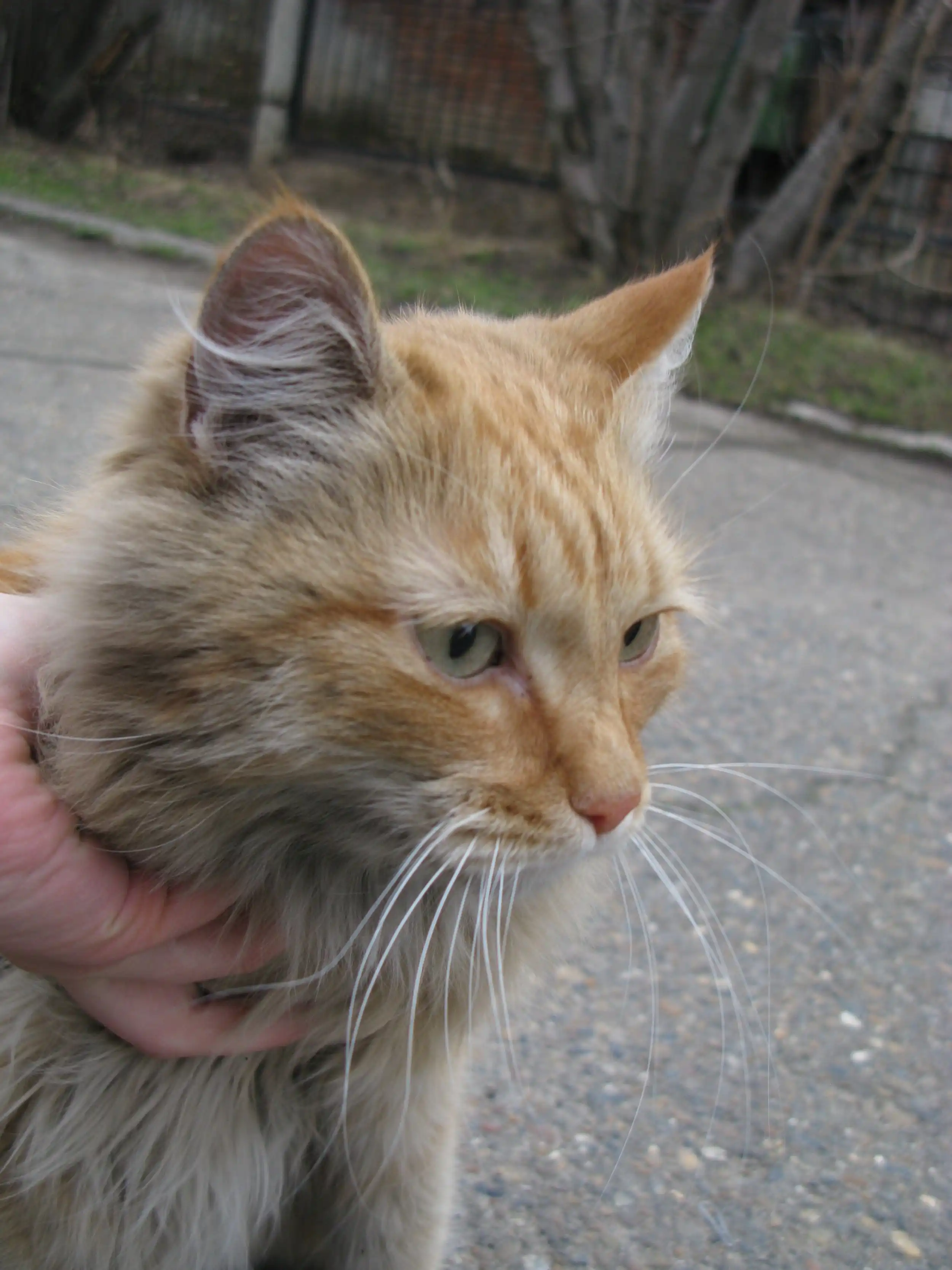 На территории нашей организации уже второй день ходит рыжий кот. Явно когда то был домашним, шерсть густая, очень ласковый, глазки и носик чистые.