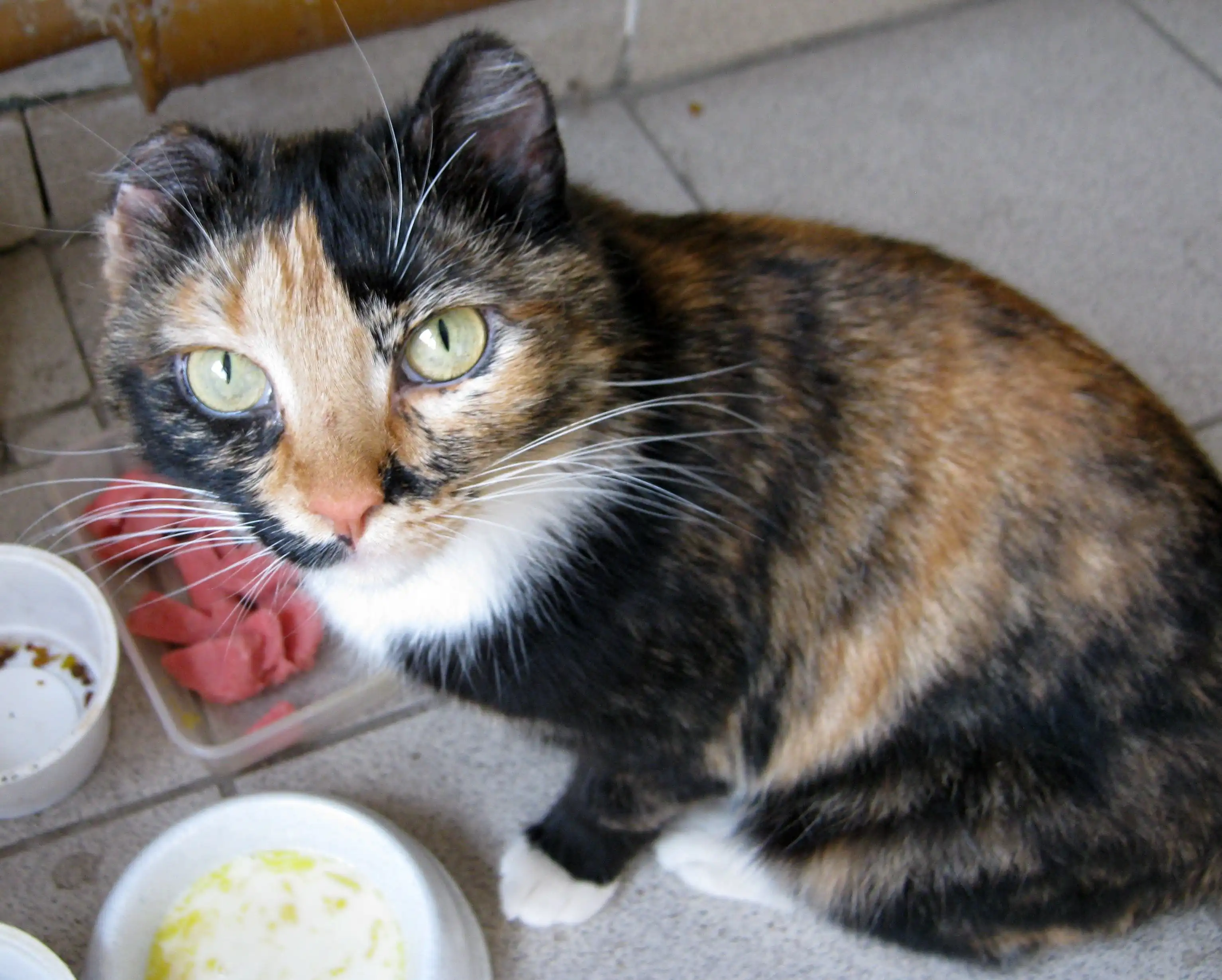 Жильцы ее подкармливают, но ей нужен настоящий хозяин, чтобы заботился и гладил каждый день! Моя кошка ее на порог не пустила, к сожалению.