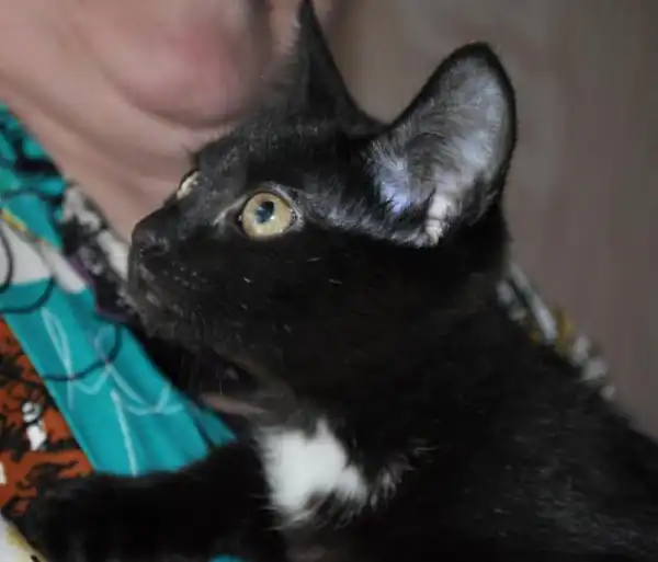 Ласковая и весёлая девочка черного окраса с белым галстучком, с красивыми ореховыми глазками ищет свой дом и любимых хозяев! Лоточком пользуется без проблем и нареканий. Как и все малыши, любит внимание и игры.