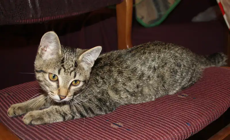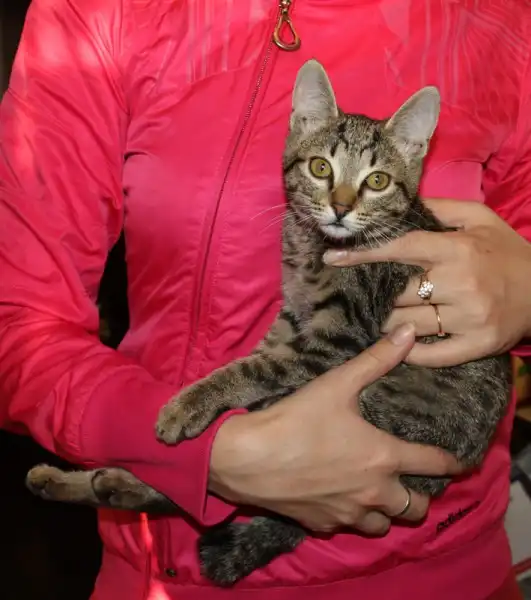 Отдается в надежные руки полосатый котенок, обнаруженный в подъезде (возраст около 3, 5 мес.). Мальчишка чистый, ухоженный, видимо потеряшка. Лоточек знает на отлично. Обладает изюминкой - хвостик на кончике подобен букве Z. Скидка на кастрацию по достижению нужного возраста предоставляется.