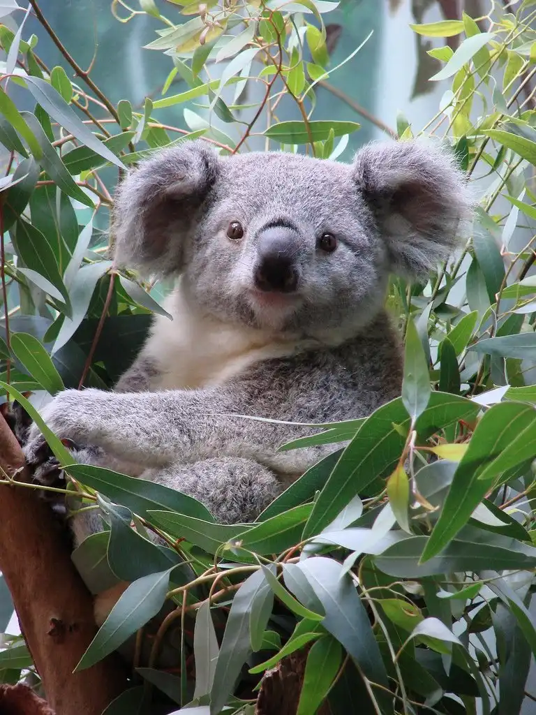 Австралийский "мишка" с круглыми ушами Эвкалипта листья может есть часами.