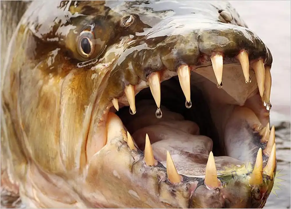 Огромной тигровый Голиаф праву считается одной из самых страшных и опасных пресноводных рыб в мире: по кровожадности она уступает только пиранье. Вооружённые набором из 32-х больших зубов крупные представители этого вида, обитающего в Африке, нападают даже на крокодилов.