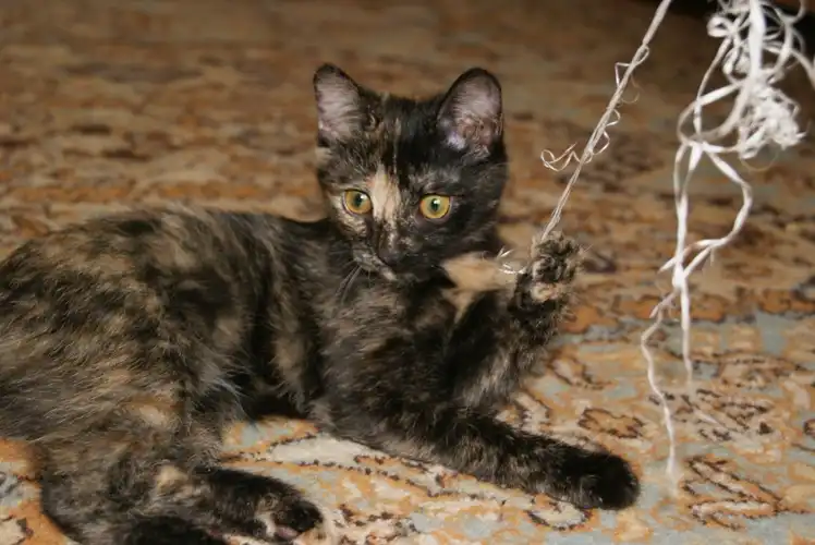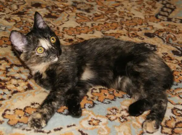 Отдается в самые добрые руки кошечка Шпулька трех месяцев от роду, окрас черепаховый. Типичная окраска оживляется кокетливым персиковым галстучком и трогательными персиковыми носочками на левых лапках. Котенок просто сердцеразбивательный: хорошенькая на мордочку, веселая, озорная, шустрая, одинаково азартно охотится на бантики, мячики, веревочки, кошачьи хвосты и человечьи руки-ноги под одеялом. С ней не соскучишься, растопит лед в любом сердце.