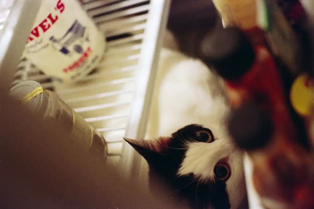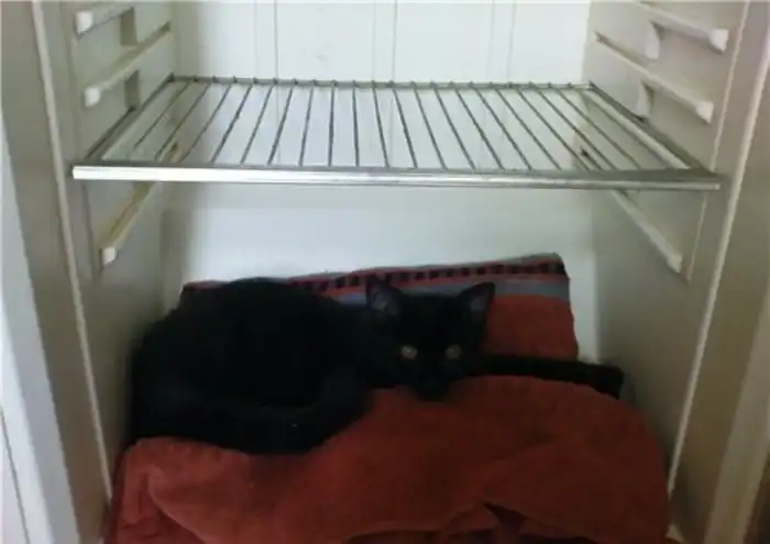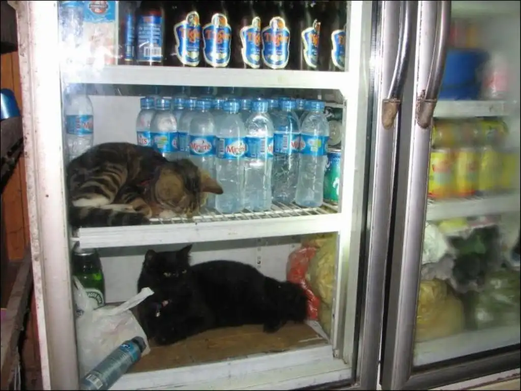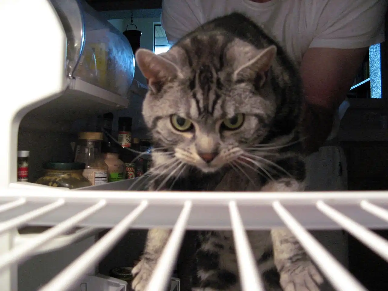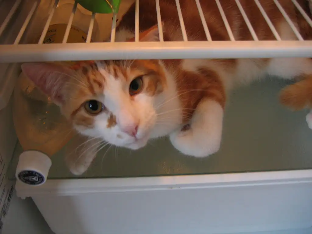«Кота из холодильника не вынимать! За хорошее поведение он временно находится в раю». Шутки шутками, но фотографий в котов и кошек в холодильнике в интернете оказалась просто уйма. Любит народ сажать своих усатых питомцев в холодильник и фотографировать их довольные или перепуганные морды среди еды.