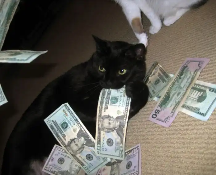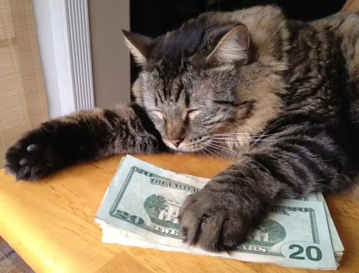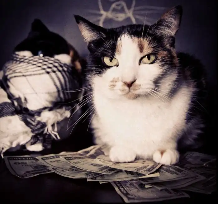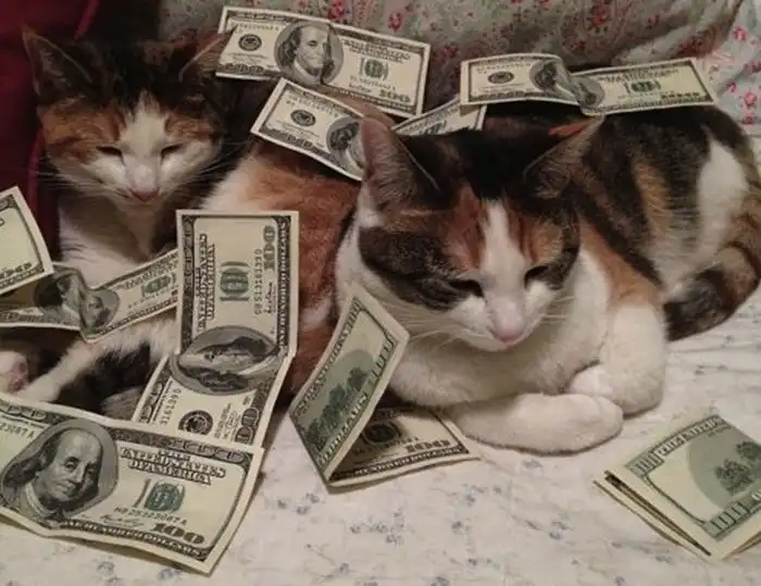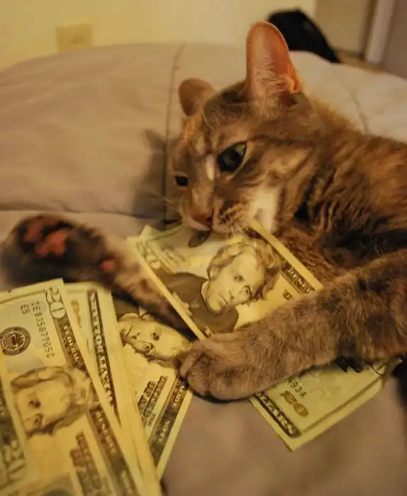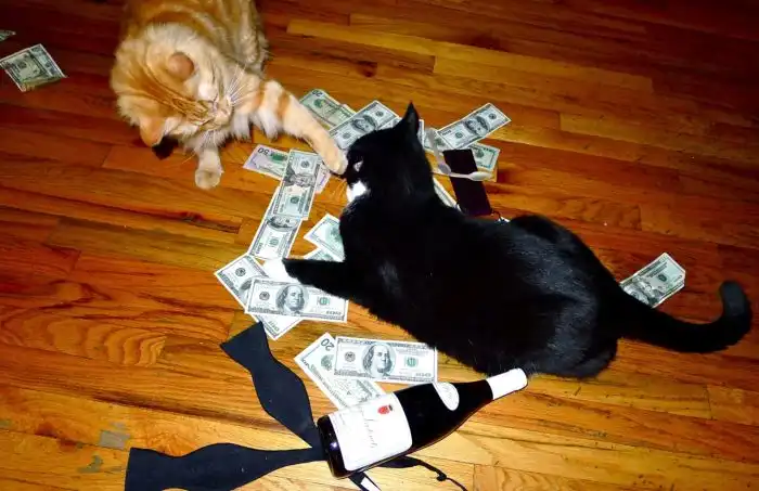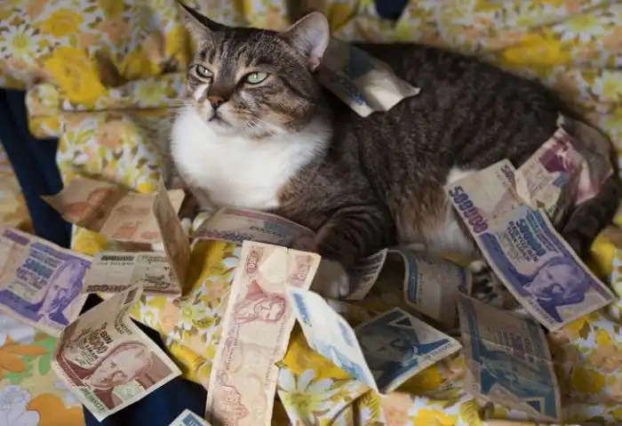 Как оказалось, коты очень любят деньги и все, что с ними связано.