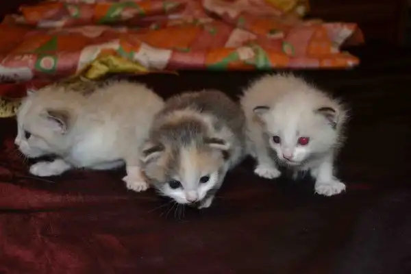 Отдадим трех котят (2 девочки (одна пятнистая, вторая бежевая с розовым носиком), 1 мальчик (чуть темнее бежевой девочки и носик черненький)) в хорошие руки. Возраст примерно 3 недели.8-961-887-54-42 (Лера)