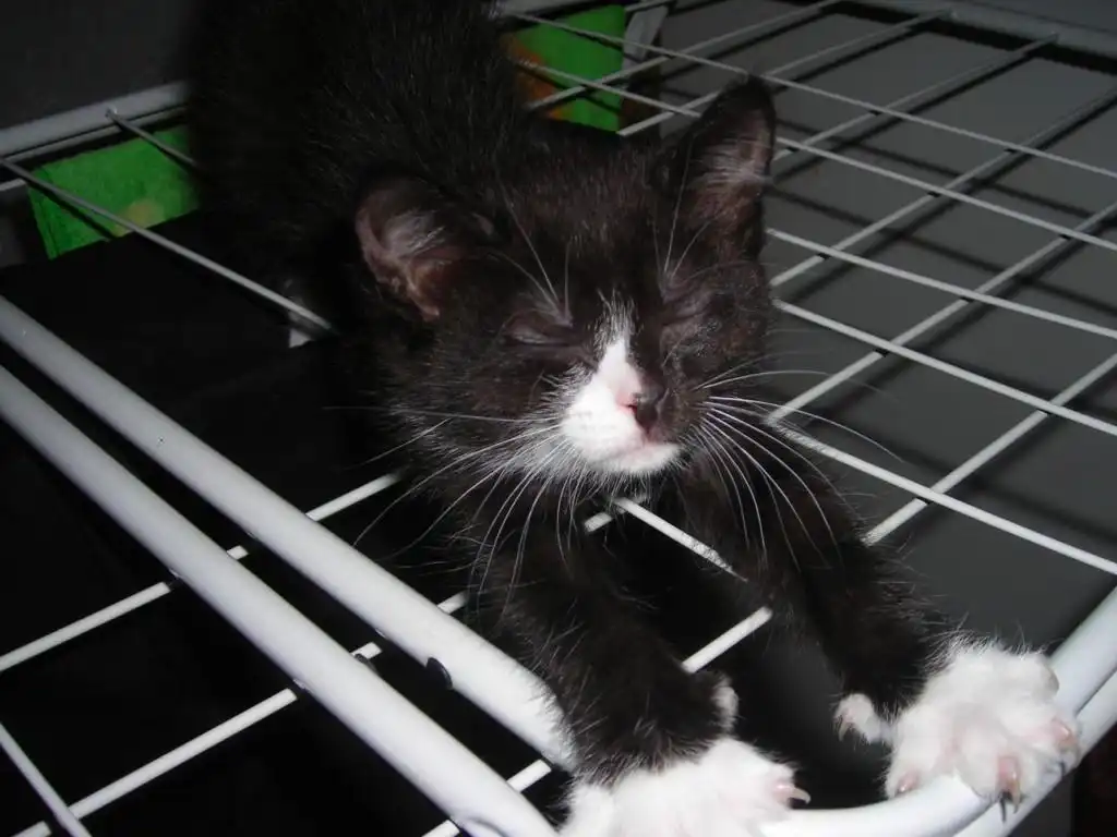 В подвале рынка была найдена кошка с недавно рождёнными котятами. Это семейство явно были домашним, чистеньким, упитанным, котята в лоток пошли сразу. Двоих уже пристроили, сейчас осталась чёрная девочка, с которой нам труднее всего было расстаться из-за её невероятно милого и контактного поведения. Она очень игривая и беззаботная!