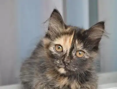 Трехцветная-Фифа-менее ласковая. Скорее предпочтет поиграть чем понежится на руках хозяина. Более смелая и отважная. У Фифы необычная пушистая шерстка с эффектом седины!