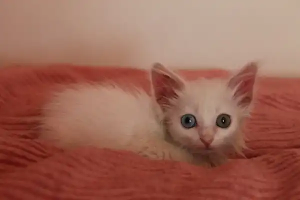 Котенка подобрали в подъезде всего в мазуте, отмывали несколько раз, чтоб котенок из серого с черным превратился в белого пушистого. Будет скорей всего полупушистой, похожей на ангору. Вроде девочка. Возраст около 1,5 месяцев. Активный, игривый котенок, ходит в лоток, кушает корм для котят. От паразитов избавлена. Отдается только при условии стерилизации.