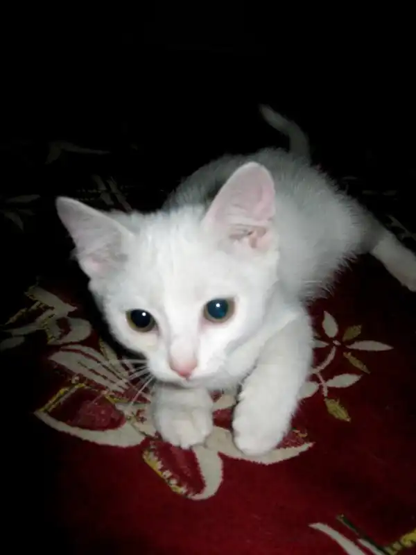 Котенок, мальчик, примерно 2 мес, снежно-белый с янтарными глазами ищет дом. Найден на улице. Туалет нашёл сам (наполнитель "Котяра" ). Игривый, ласковый, самостоятельный. Ест сушку и кошачьи консервы.