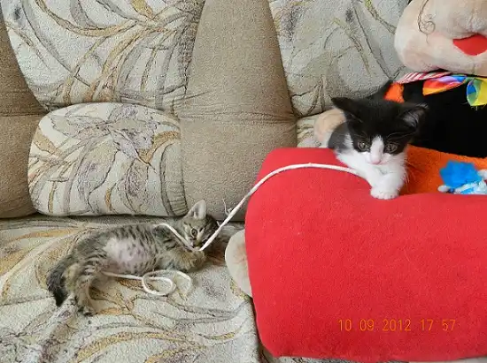 Ищут любящих хозяев котята: девочка пёстренькая и мальчик чёрно-белый. Возраст 1,5 мес. Были найдены в коробке в магазине, им тогда было 3 недели, но прошло время и они окрепли и стали красивыми крошками. С лотком проблем нет, ходят куда надо, из еды предпочитают натуральную еду или влажный корм. Имеют скидку на стерилизацию.