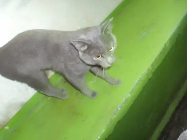 Отдам очень симпатичного котейку, серебристого окраса, похожего на русскую голубую, коту чуть меньше года, живет в подъезде.
