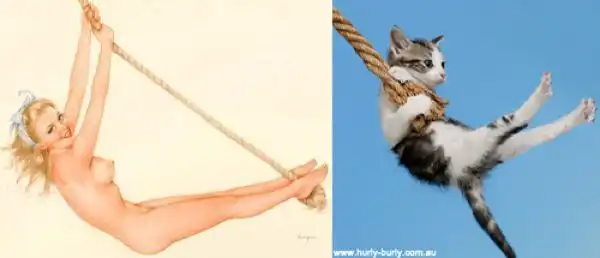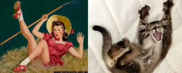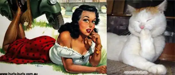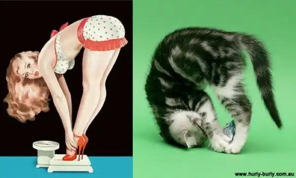 Как известно, девушки могут бесконечно рыскать по интернету в поисках милых фоточек котят, в то время, как мужиков больше интересуют сами девушки. Эта подборка котов, которые позируют в стиле девушек с пинап-плакатов - альтернатива для обоих полов. Мужики смотрят на левую часть картинок, девушки - на правую ;)