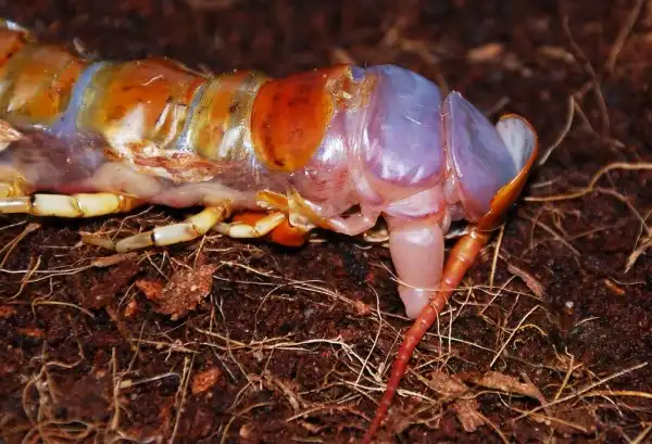 1 На фото сколопендра линяет , во время линьки цвет меняется