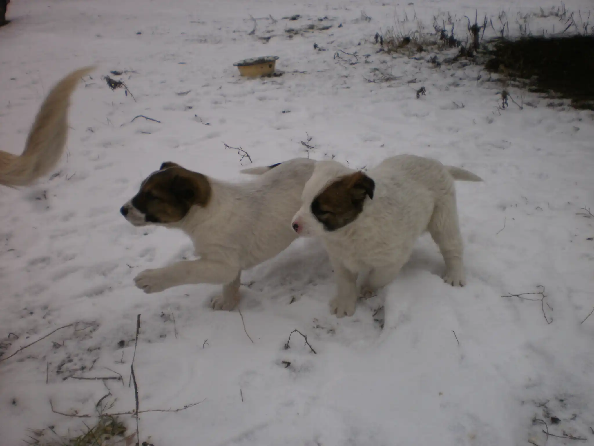 Отдам 2-х щенков, обе девочки, мама - чистокровная лайка, папа - дворняга (симпатичный и добрый белый пес).