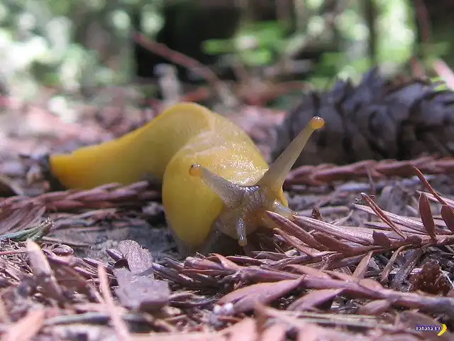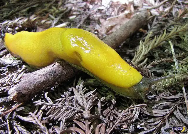 На это существо, которое называется банановым слизнем, смотреть вполне нормально, но трогать не каждый осмелится.
