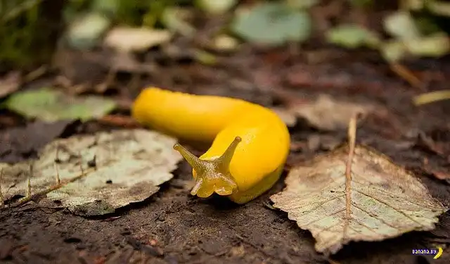 Банановые слизни — гермафродиты, то есть у них имеются и женские и мужские половые органы, которые шутница-природа расположила на голове. В принципе, они могут и сами себя оплодотворить, но предпочитают привлечь партнера. О готовности к размножению сообщает слизь с особым феромоном, которую оставляет после себя слизняк. Процесс двойного оплодотворения обычно происходит ночью и длится около 12 часов.