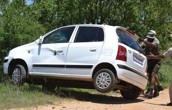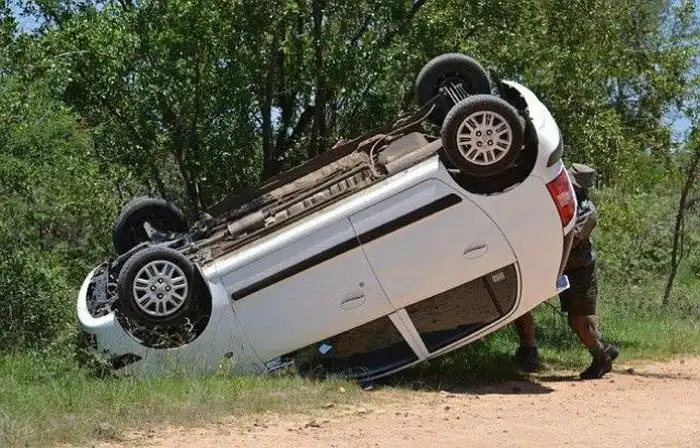 дверь автомобиля и с легкостью перевернул его на крышу!