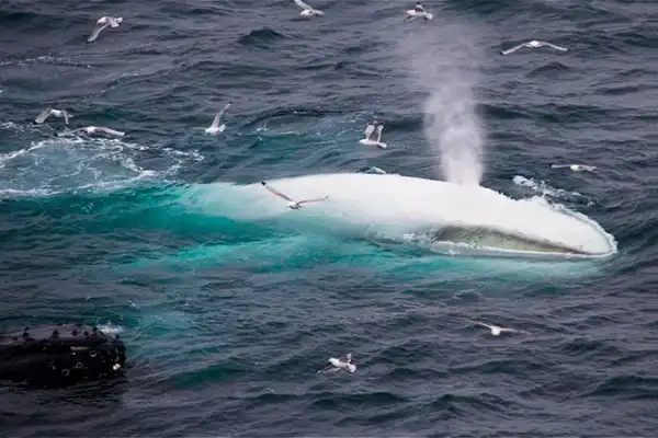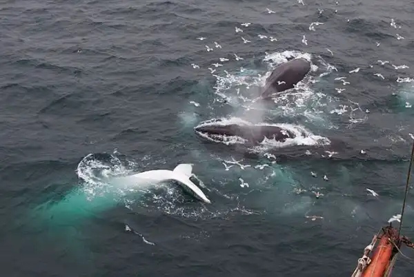 Рыбаки сначала приняли его за глыбу льда. Киты охотились за рыбой и белый кит никак не выделялся своим поведением среди остальных. За последние 20 лет подобный белый кит был замечен у берегов Австралии.