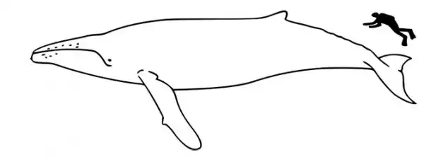 Горбач — довольно крупный кит. Средняя длина его тела составляет 14.5 м для самок и 13.5 м для самцов. Средняя масса горбатого кита — 30 тонн. Размеры человека по сравнению с размерами горбатого кита: