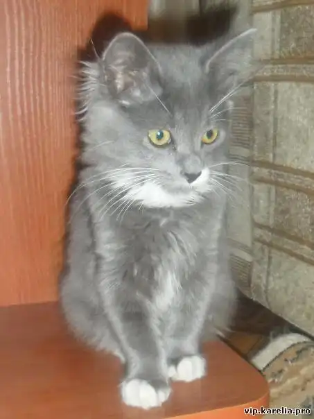 2. Мальчик - дымчато-серый с белой грудкой и лапками, пушистый