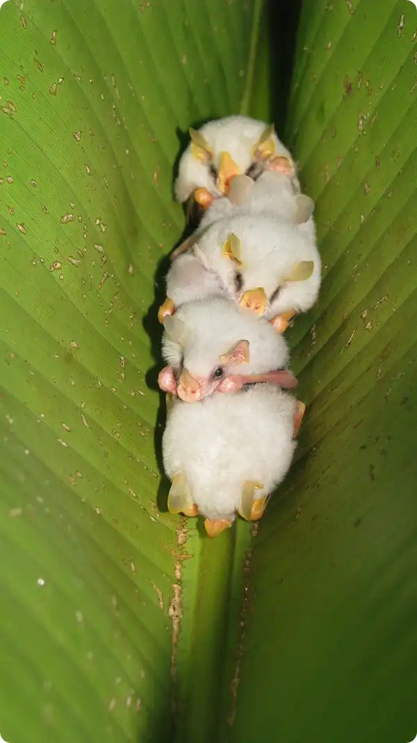 Но в качестве убежища для дневной сиесты белых летучих мышей не привлекают ни темные переполненные пещеры, ни высушенные стволы упавших деревьев.