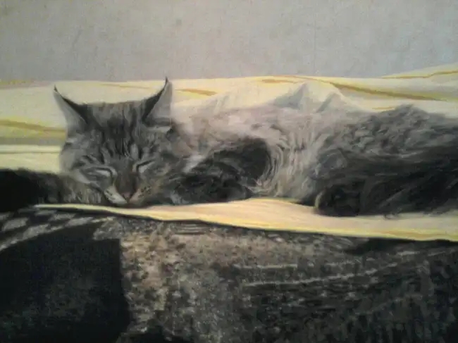Взрослого кота мы подобрали в подъезде примерно 28 декабря. Его предыдущие хозяева оставили его в морозы в подъезде, он там прожил 3-4 дня. Вместе с ним в подъезд они выставили пакет с лотком, наполнителем для лотка, миской, сухим кормом и расчёской. Котику приблизительно год (может даже меньше, т.к. когда мы его подобрали у него резались дальние зубки и он не мог кушать). Кот чистый, похож на породу Мейн-кун. Добрый и ласковый кот, приучен к лотку.