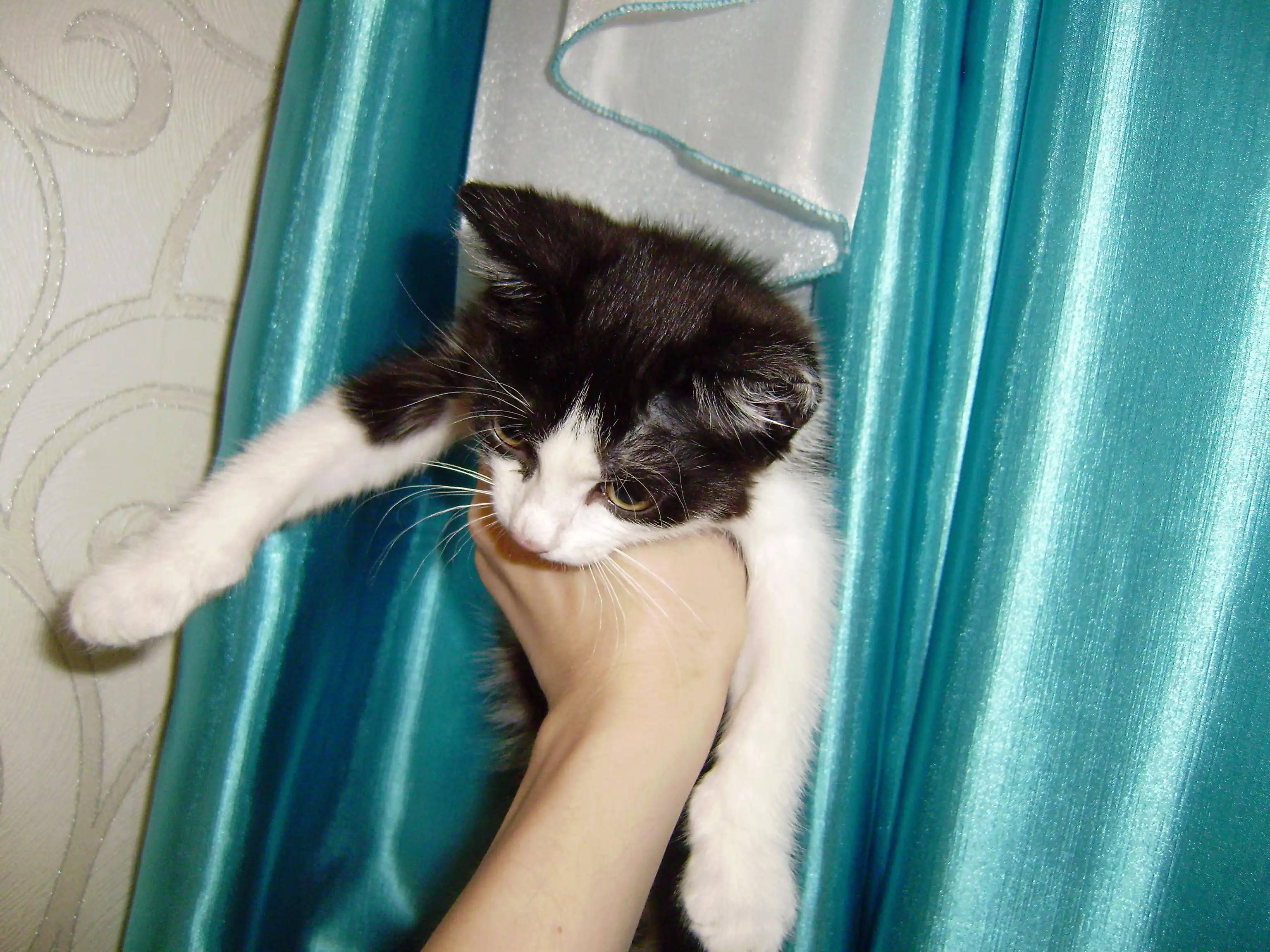 Непонятно как, совсем маленькая кото-девочка оказалась в холодном поъезде, сидела с потухшими глазками... Сейчас Кнопочка отмыта, осмотрена врачем (здорова) и носиться со всей своей детской непосредственностью и азартом за кошачьими игрушками. Лоток освоила сразу, обожает когтеточку, лазит по ней как по пальме, отлично ладит с моими кошачьими. Кому хочетьсядобавить в свою жизнь позитива, азарта и безграничной любви и ласки этой маленькой непоседы? Кнопочка ждет свою семью.