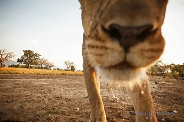 К большому сожалению для Хетерингтона, подошедшую к туше львицу заинтересовало не свежее мясо, а дорогой фотоаппарат.