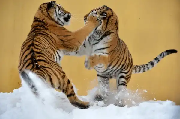Тигры снеговиков лепят)))